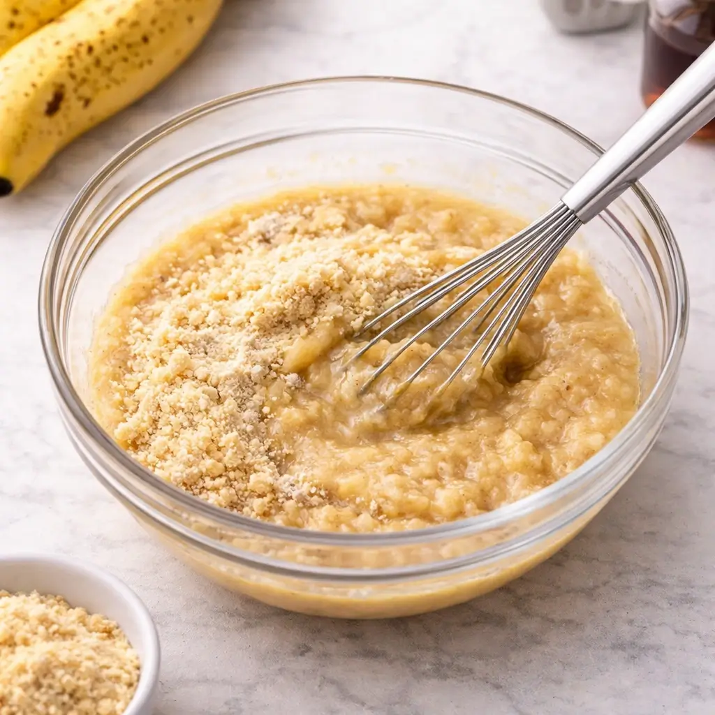 - Combine wet ingredients: Mix the mashed bananas with eggs and vanilla extract until well combined.