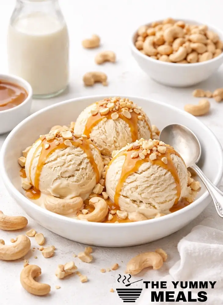 Cashew milk ice cream is a smooth and creamy frozen dessert made using cashew milk instead of dairy milk or cream. Cashew milk is a plant-based milk prepared by blending soaked cashews with water until silky and rich.