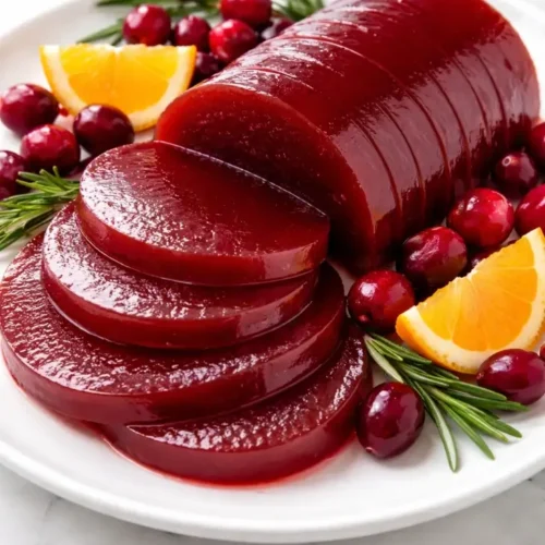 Jellied Cranberry Sauce is a classic holiday side dish loved across. It is known for its smooth, jelly-like texture and its bright balance of sweet and tart flavors. Cranberries naturally contain pectin, which allows the sauce to set into a firm and slice able jelly.