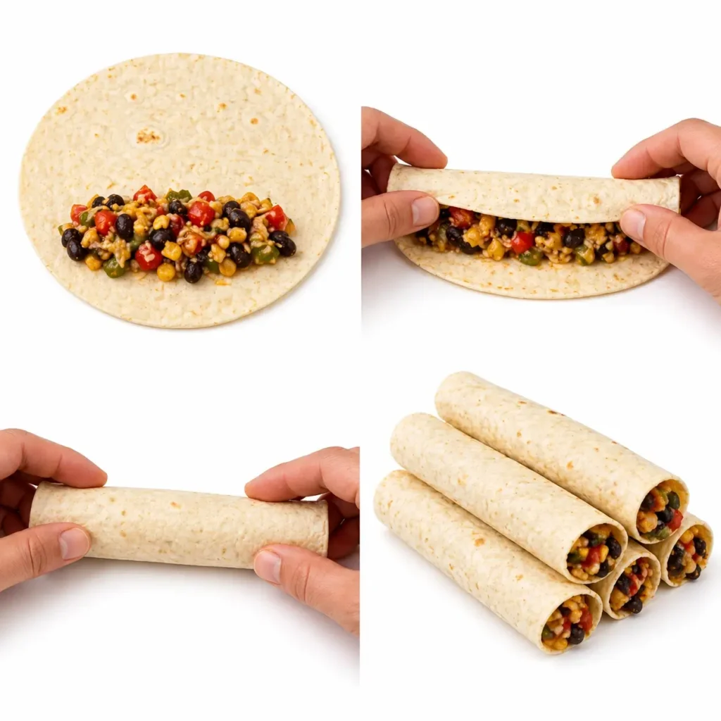 - Preheat your oven to 200°C (400°F) for even baking. Chop vegetables into small pieces for easy filling. Mash or mix your beans well for a smooth texture. Warm tortillas slightly so they become soft and easy to roll.